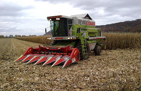 Mehrere Mähdrescher zum ernten aller Kulturen inkl. einer Maschine mit Raupen.